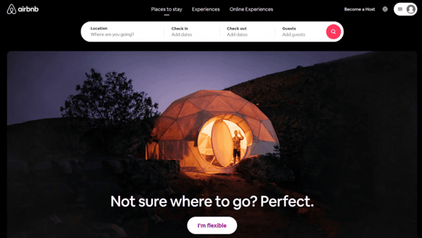 - Airbnb has done a good job of keeping things familiar so that users don’t feel like they are using a completely different page. The same logo placement is used, the same account nav, and a similar-looking search bar is placed in the centre. (I’ll touch on this in cons)